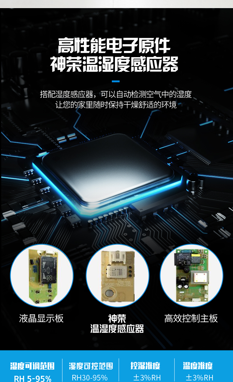 湿度控制:带有湿度显示,微电脑自动控制